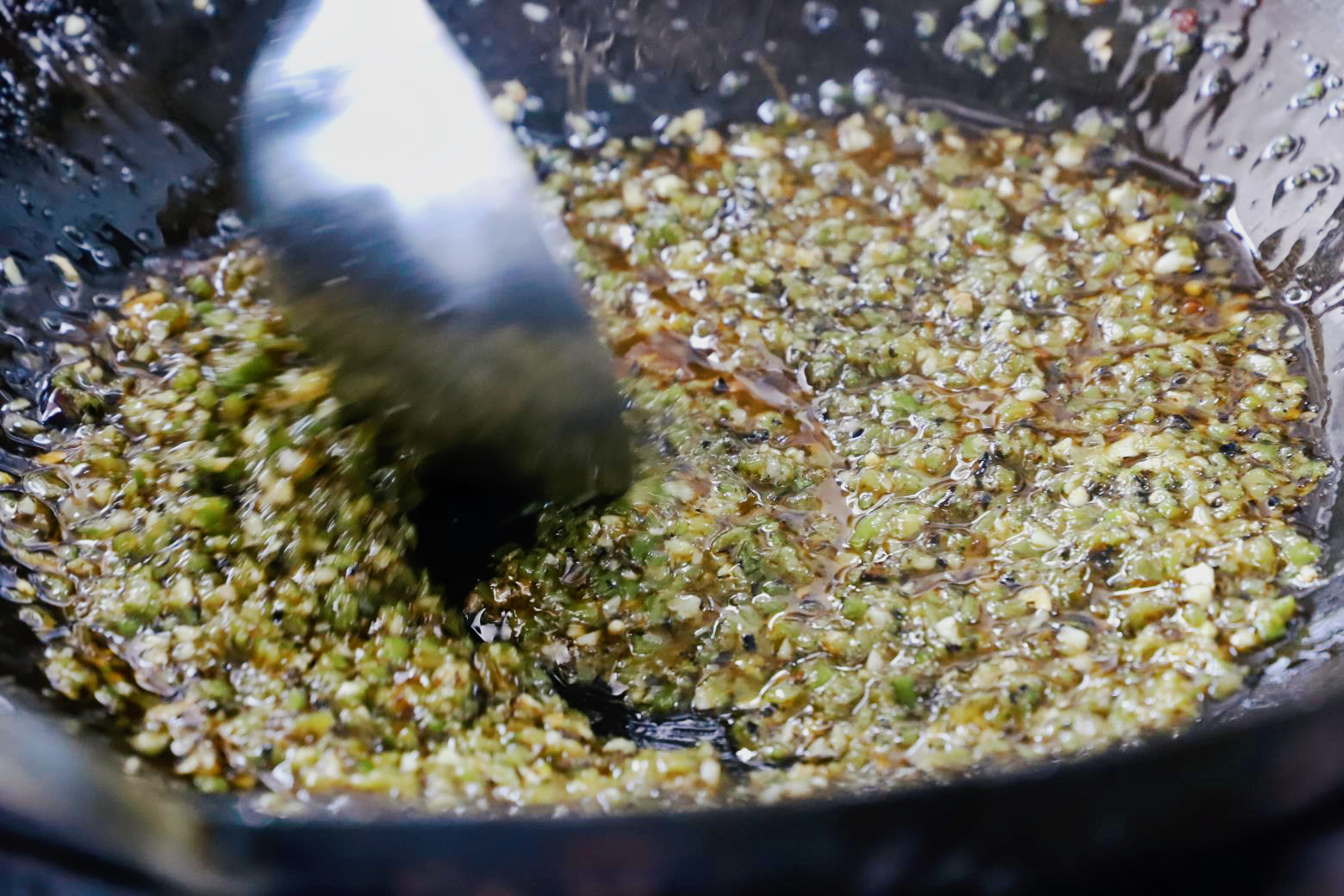 第五步【炒】 翻来覆去,控火调味。火候的大小和下入调料的顺序都需要重点注意。