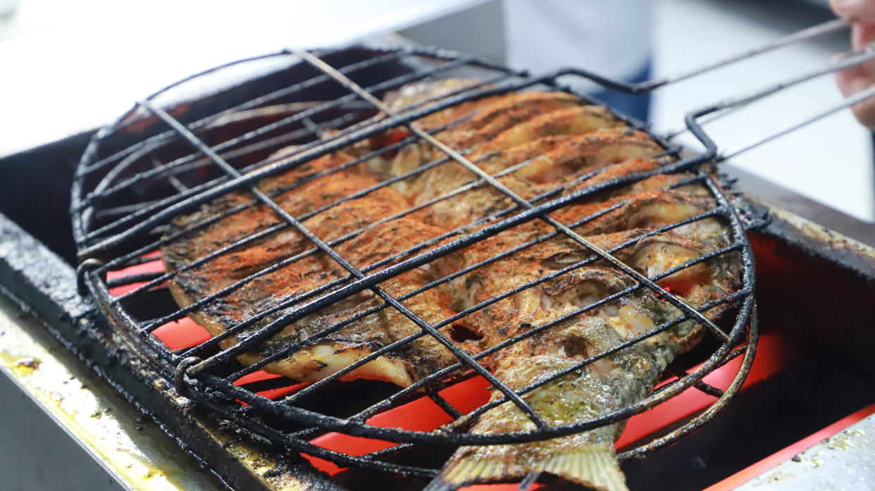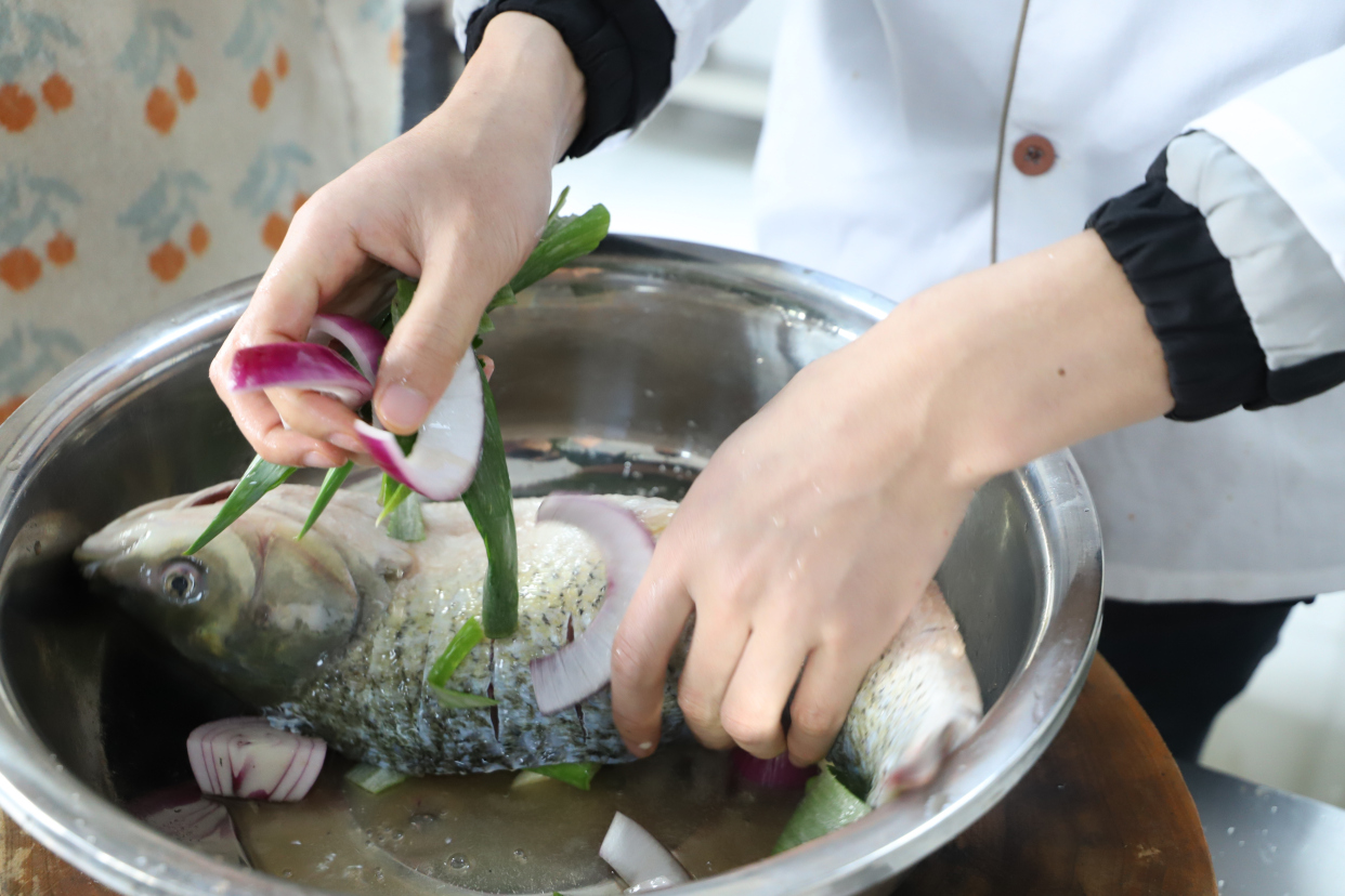 在烹饪烤鱼的过程中,讲究“选、杀、腌、烤、炒、炖”。